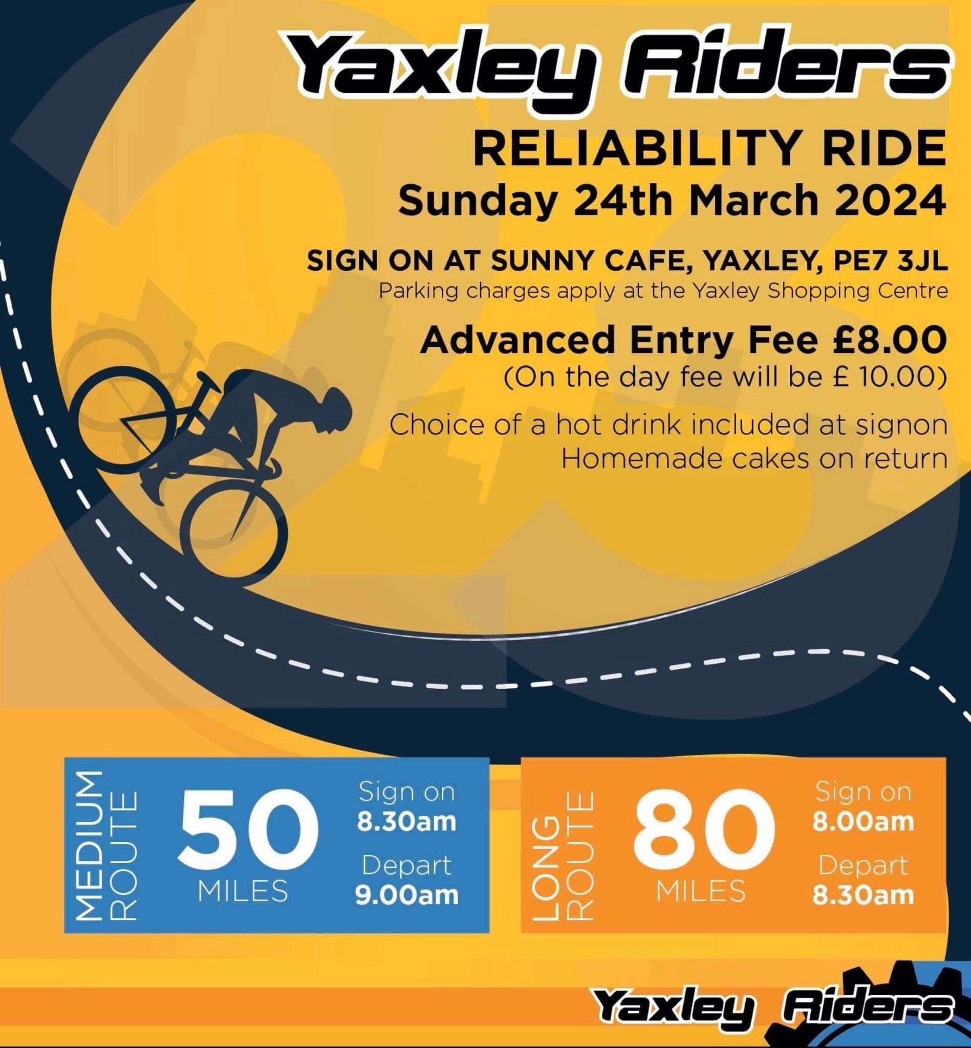 We are pleased to announce the 2024 Reliability Ride, this is always a very popular event as it allows the rider the opportunity to ride either of our two routes at a pace that they feel comfortable with. Unlike many events which are governed by distance or speed, the success of a reliability ride is measured by how the individual accurately predicts the time it will take them to complete the route. There are 4 different time frames allocated per course all you need to do is accurately predict which one you will complete the course in.